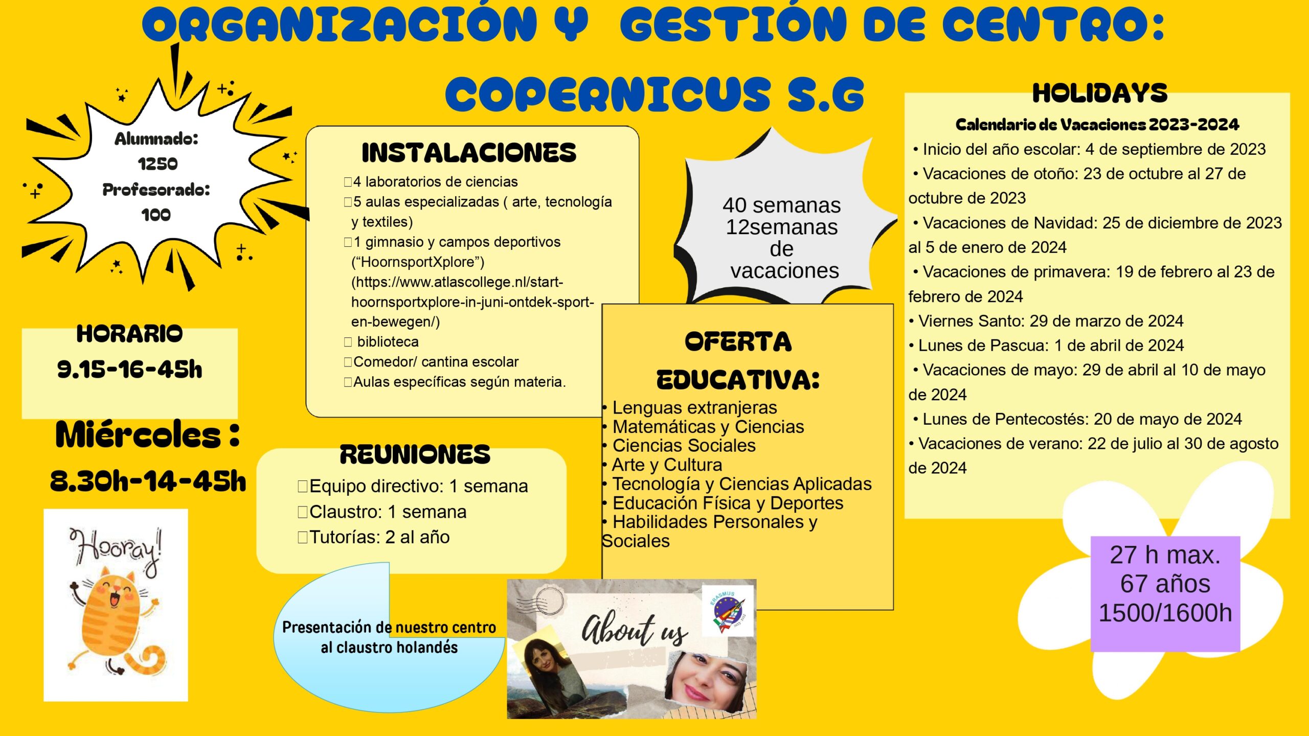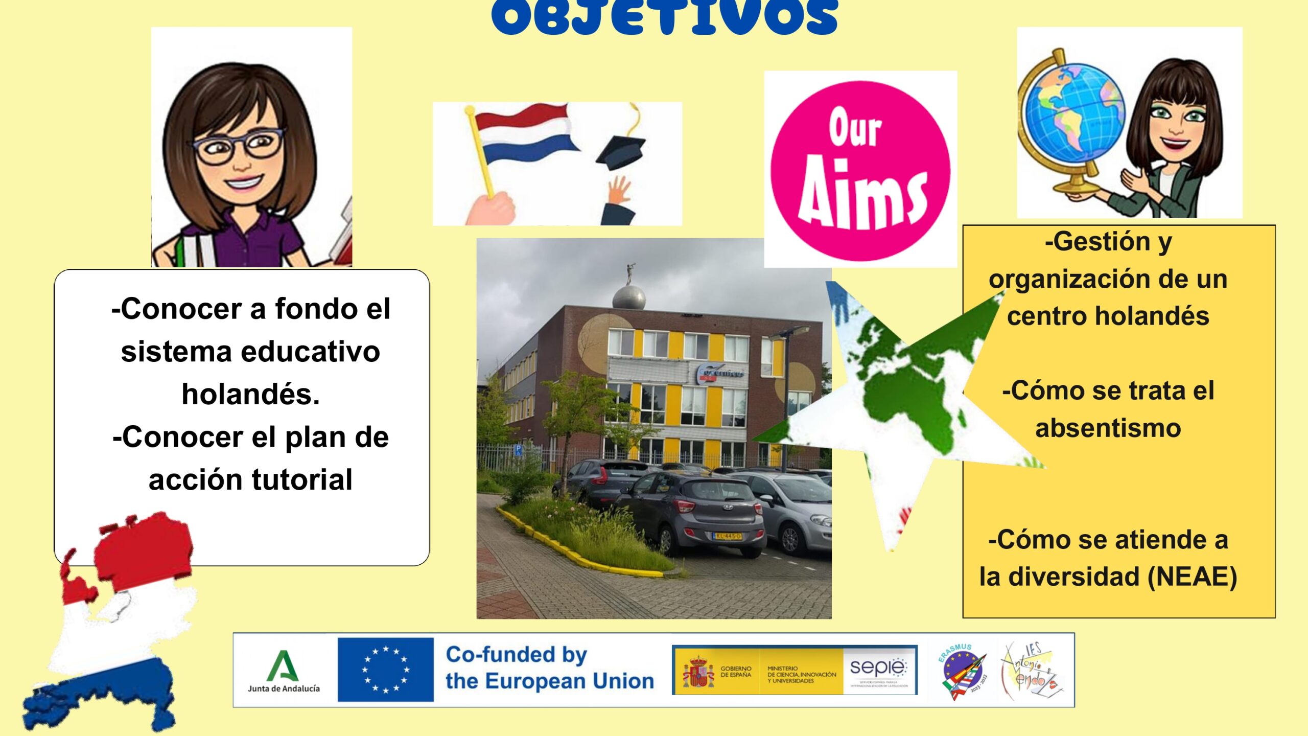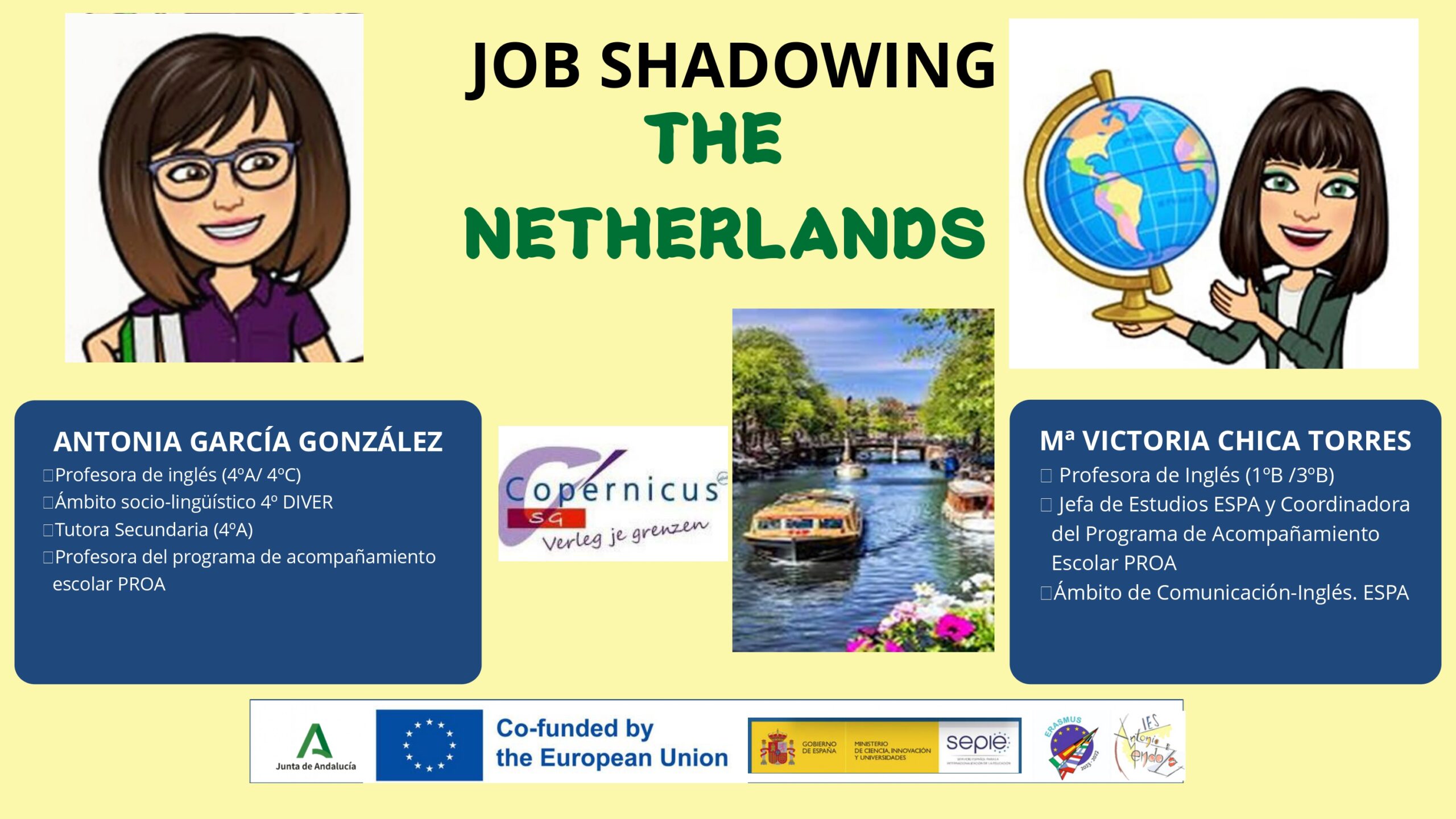 Mª Victoria Chica Torres y Antonia García González participaron conjuntamente en un job shadowing en los Países Bajos. Durante su estancia en Hoorn, exploraron modelos educativos innovadores y la integración de la sostenibilidad en el currículo escolar entre otros muchos aspectos. También estudiaron cómo se fomenta la autonomía del estudiante y se utiliza el entorno urbano como recurso educativo.