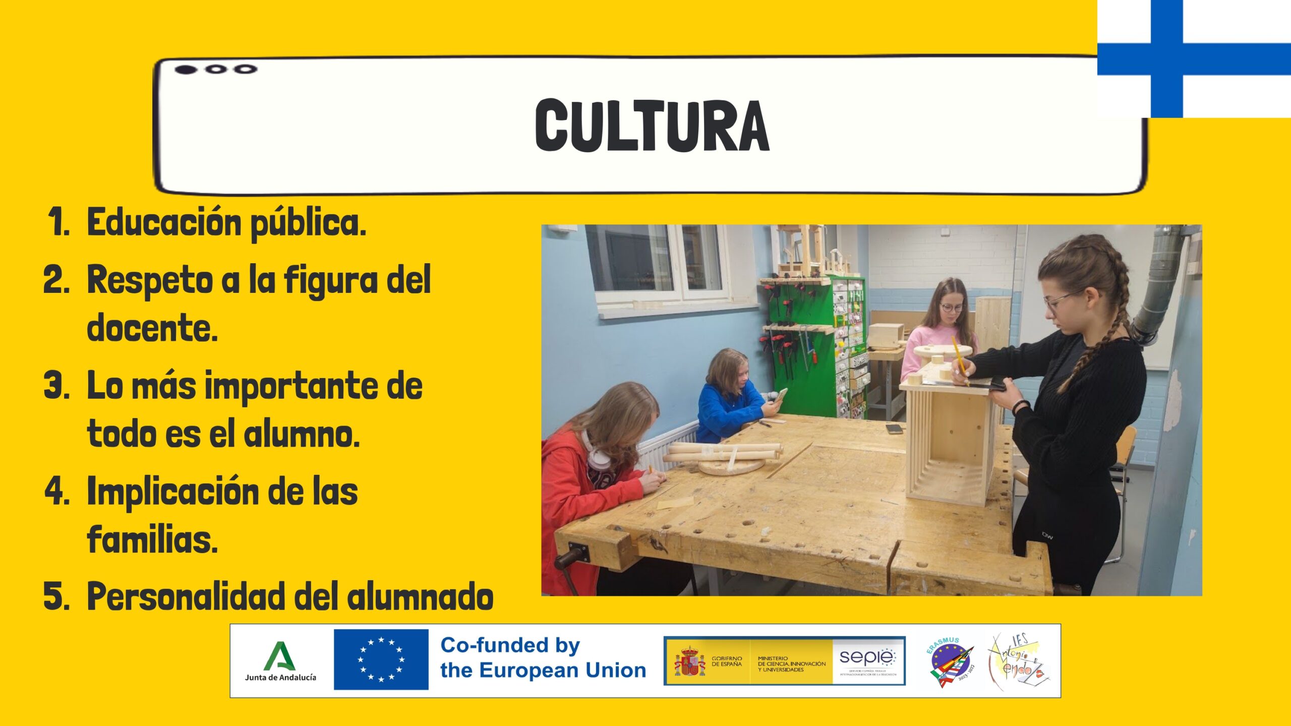 Víctor J. Fuentes Martínez tuvo el privilegio de realizar su job shadowing en Finlandia, en la escuela Syväkankaan. Sus vivencias y conclusiones pueden observarse en la siguiente presentación: